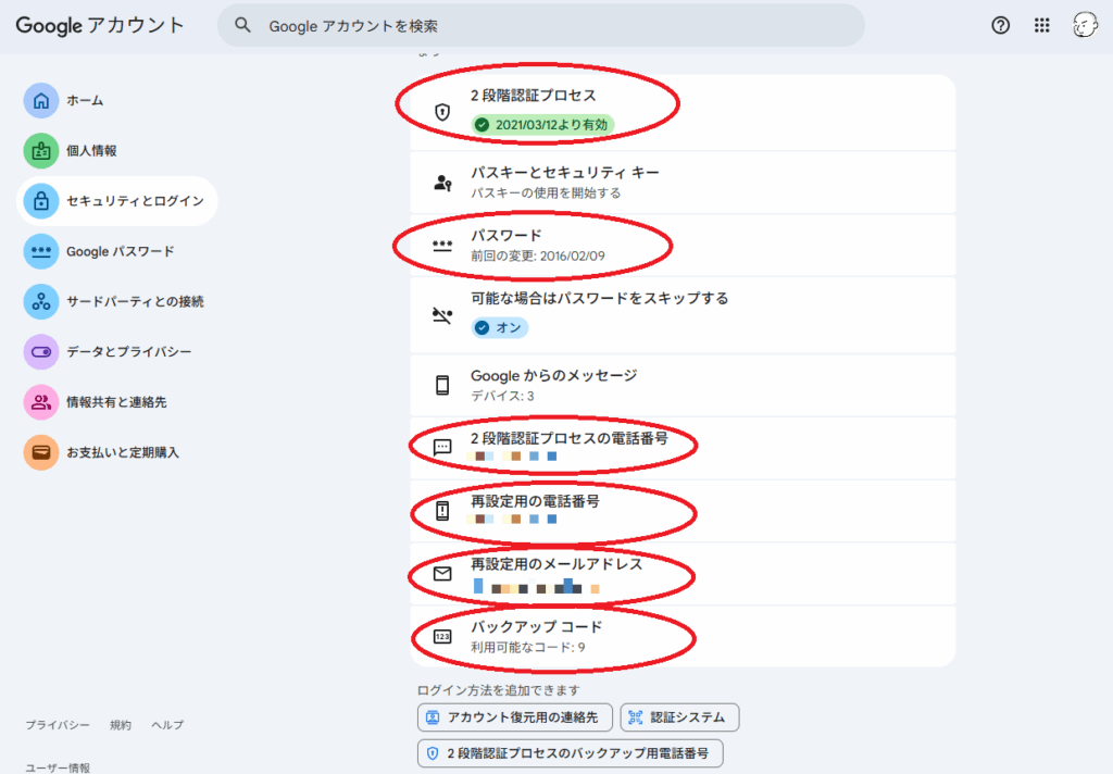なので、アカウント設定でログイン情報と復元用の準備をしておくことが必要です。